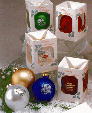 MINIMUM QUANTITY IS ONLY 50 ORNAMENTS! - For 50 to 99 ornaments your cost would be $3.25 per ornament which includes print in one color ink on the front of the ornament packed in individual gift box. Ornament quantity of 50 to 99 ornaments is available only in single color ink printed on front of the ornament only